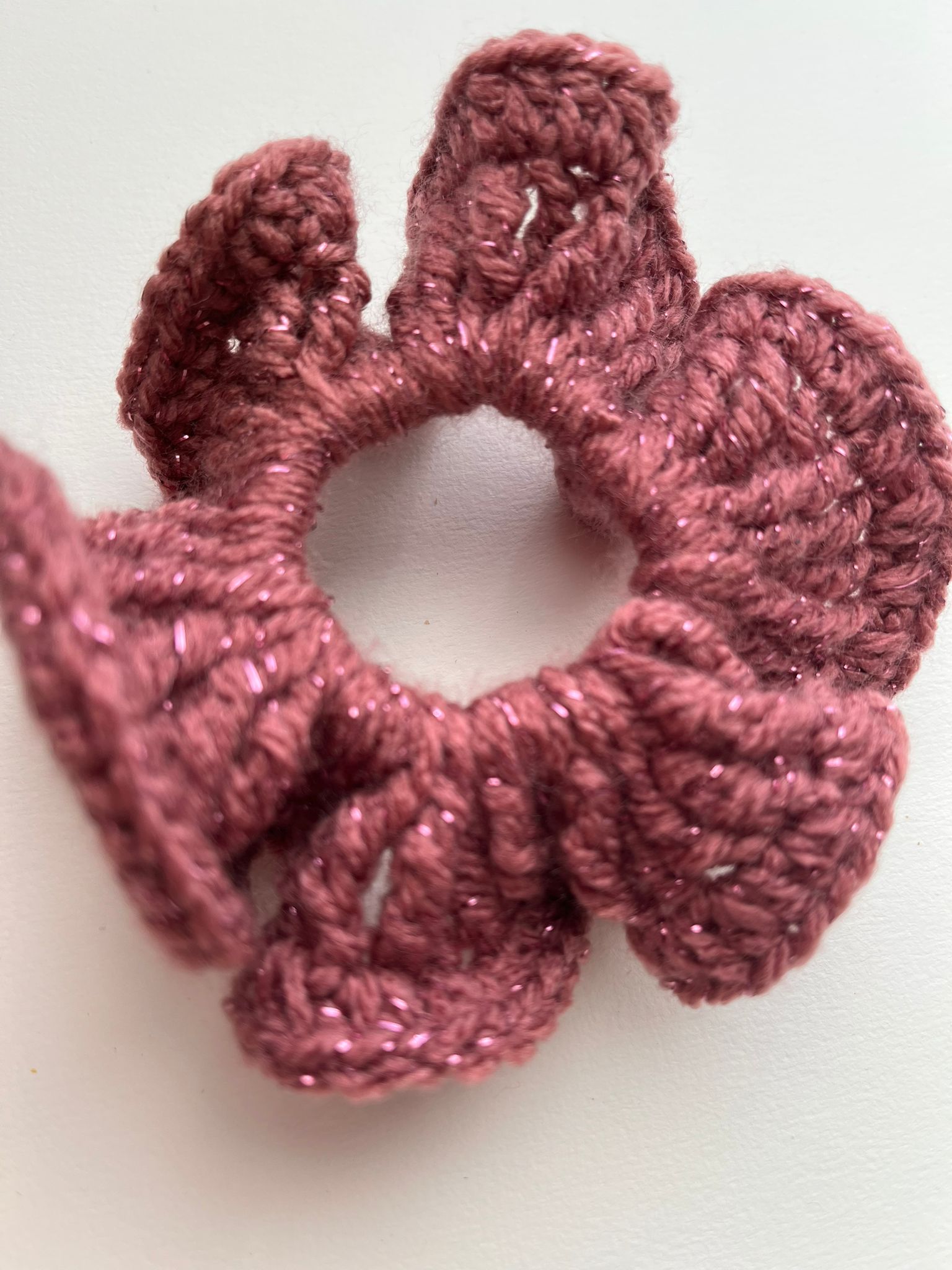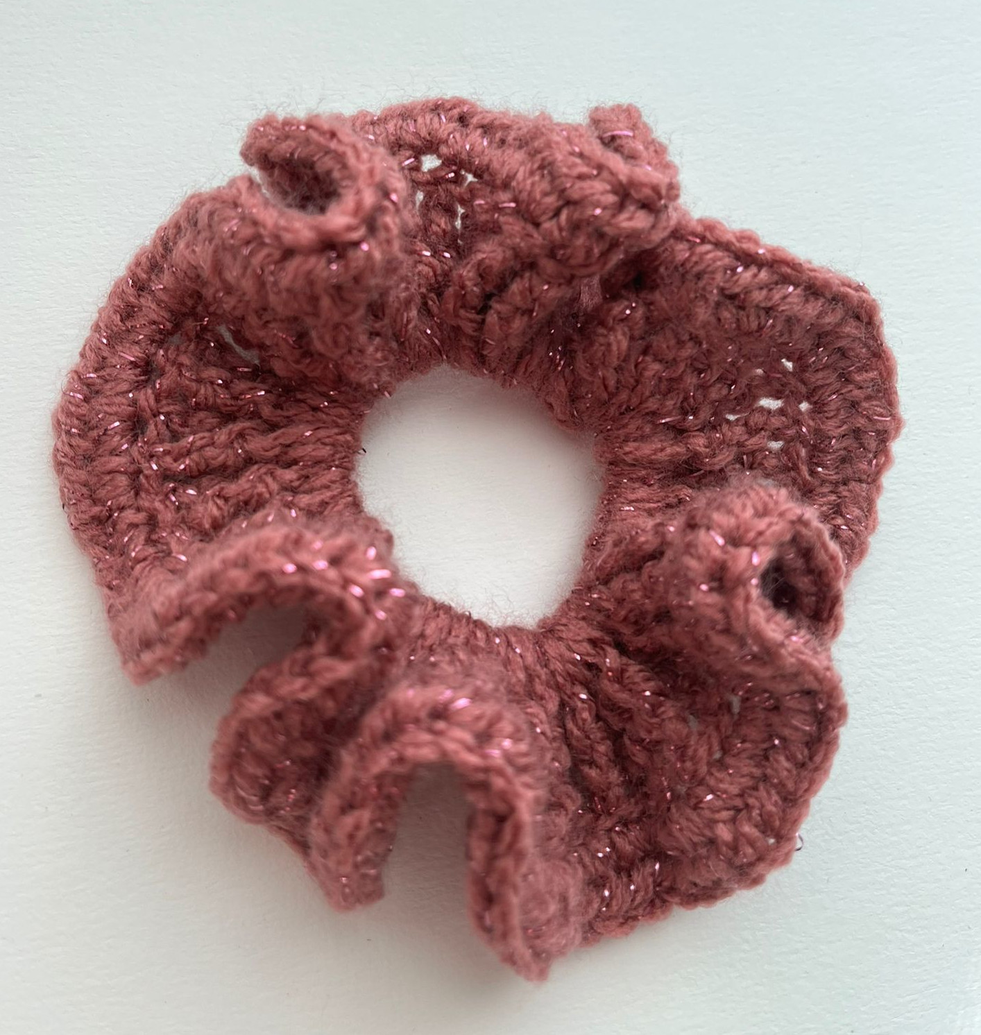 Chouchou en acrylique mauve chaud avec filaments brillants